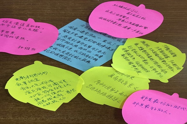 看完电影和纪录片,团员们各抒己见并且在便签纸上留下了他们的观后感悟。团支部收集起了所有的观后感便签拼成了长征的字样。