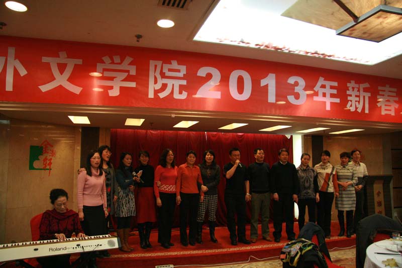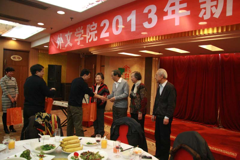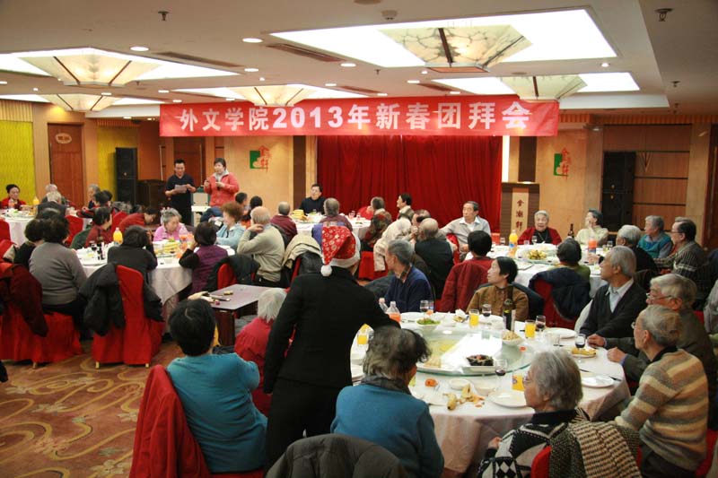 2012年12月25日,外文学院在京师大厦金潮轩举办了2013年离退休教师新年团拜会。这是外文学院坚持10多年的一项活动。学院党政班子及各系部室负责人参加了团拜会,为离退休教师祝贺节日快乐。