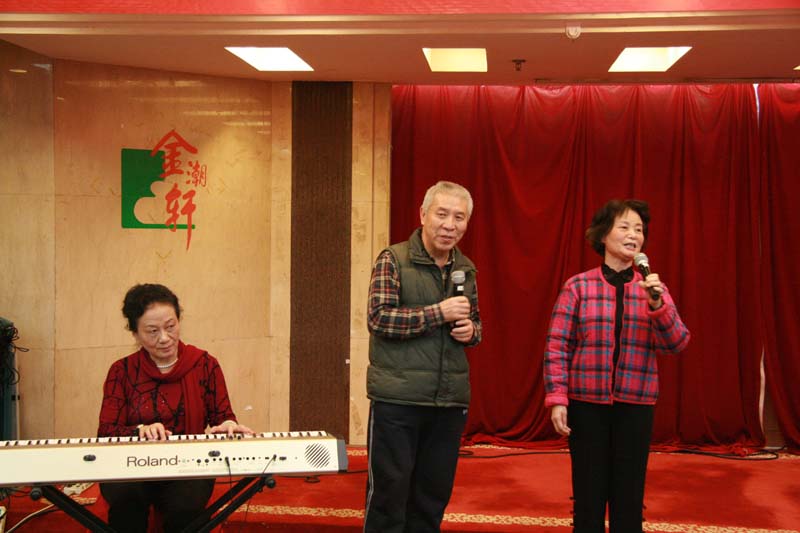 席间,离退休的老师们纷纷引吭高歌。陈秋凡、卢维庸、高万里、保学文等老师,先后为大家演唱了俄罗斯歌曲;林永福老师为大家演唱了印尼民歌;曹宝健老师为大家演唱了中国歌曲《在那遥远的地方》;刘象愚老师和高大芳老师为大家演唱了保加利亚民歌;金慕箴老师与冷丽敏、刘玲等老师一起为大家演唱了日文歌曲;毛大威、徐汝舟老师与祝珣老师一起为大家演唱了著名的《雪绒花》;冯采老师与寇学敏、陈则航、王德亮老师一起为大家演唱了经典的《铃儿响叮当》。和每次团拜会一样,离不开邹映晖老师精彩的即兴伴奏。在大家热情的掌声中,邹老师为大家自弹自唱了一首《掌声响起来》。