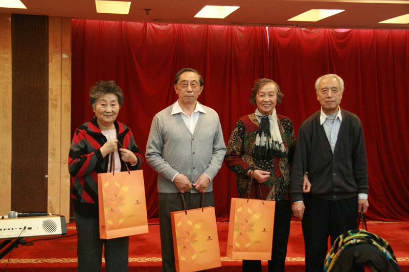 程晓堂院长、苗兴伟副院长等,向年满80岁的陈宝辰、卢惟庸、刘寿祺、张锡华老师和属小龙的老师赠送了礼品。这几位老师在接受了礼品之后,用简短的话语感谢大家的关心,并祝大家新年快乐!