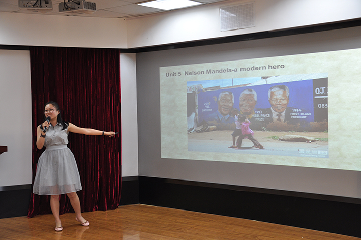 八位选手主题多样、课型不一——从法国之旅到俄罗斯琥珀屋,从曼德拉到The Monkees乐队;从阅读到写作,应有尽有。选手们从教学目标、教材分析、教学重难点、学情分析、设计思路和板书设计等方面进行说课。随后,评委根据其课程设计选取某段教学环节作为微课试讲内容。