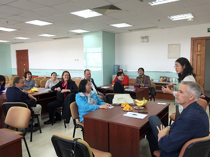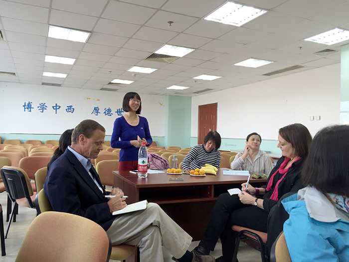 当今社会,社区或社团的概念(community)已经得到了发展,它不仅是指一个人生活的地方,还指一个人身处的关系网,例如,工作、学校、志愿组织、电脑网络等。社会学家Ray Oldenburg划分了三种类型的社区:第一社区是“家庭”,第二社区是“办公室”,而包括酒吧、参观、体育馆、教堂、公园以及网络虚拟社区在内的社交圈则被称为“第三社区”。现代人的大部分时间都花在了个人相对独立的第一和第二社区中,然而对公共空间的第三社区则没有得到足够的重视。那么,如何更好地发挥第三空间的领军作用呢?外文学院公共外语党支部于2015年10月23日下午与来自“全球领导力论坛”(Global Leadership Forum)的六位外籍企业家共同探讨了这一问题,会议由支部书记张翠萍主持。