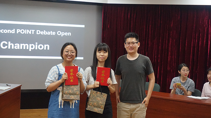 决赛结束后,台上的辩手们热情不减,又针对辩题以及刚才的表现讨论了一番。随后,五位评委们对比赛做出了精彩的点评,同时还对每位辩手给予了中肯的建议。冠军由反方上院,来自北师的对对队(张欣然,易雪曼)获得,来自中传的简单点队(吴敏,孙嘉悦)作为正方下院获得亚军,季军是来自北体的摔跤吧莉琳娜队(杨洋,李晨婕)和Presentation做不完竟然还来救场队(张少杰,杨亚维)。