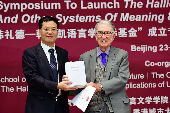刘川生书记在致辞中指出:韩礼德教授是享誉世界的语言学大师。他所创立的系统功能语言学,为揭示人类语言的奥妙提供了独特的理论视角。韩礼德教授夫妇是北师大的老朋友,长期支持我校功能语言学中心建设,多次应邀来北师大讲学交流。2011年,北师大特别授予韩礼德教授名誉博士称号,以此表彰他为我校外语学科的发展做出的重要贡献。系统功能语言学是我校外语学科的特色研究领域。近年来,av解说 通过专业人才培养和译著出版,推动系统功能语言学思想在中国的传播与教育。此次成立“韩礼德—韩茹凯语言学国际基金”既深化了北师大与韩礼德教授夫妇之间情谊,也为我校开展系统功能语言学研究搭建了国际化的合作交流平台。