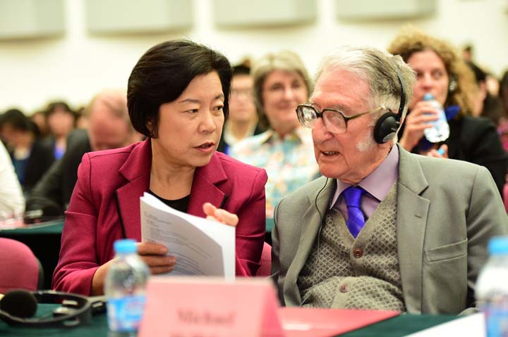 张雪副书记在致辞中指出:韩礼德教授作为系统功能语言学的创始人,具有极高的国际学术影响力。上世纪40年代,他师从王力和罗常培教授,在北京大学和岭南大学求学,在中国传统语言学研究领域有很深的功底和造诣。韩茹凯教授学识渊博,在系统功能语言学各个领域都有极富洞察力的见解,发表了大量高水平的研究成果。近些年来,韩礼德教授和韩茹凯教授先后多次来到中国,不顾高龄,亲自授课,积极向年青一代学者传播语言学思想,为帮助推动中国语言学学科建设和发展,尤其是功能语言学的理论和应用研究,发挥了重要作用。他们也非常关心中国学者的成长和发展,在著书立说、发展学科、教书育人的同时,也为中国培养了一大批优秀的语言学人才,其中一些已经成为中国当代语言学界的资深教授和学术骨干。