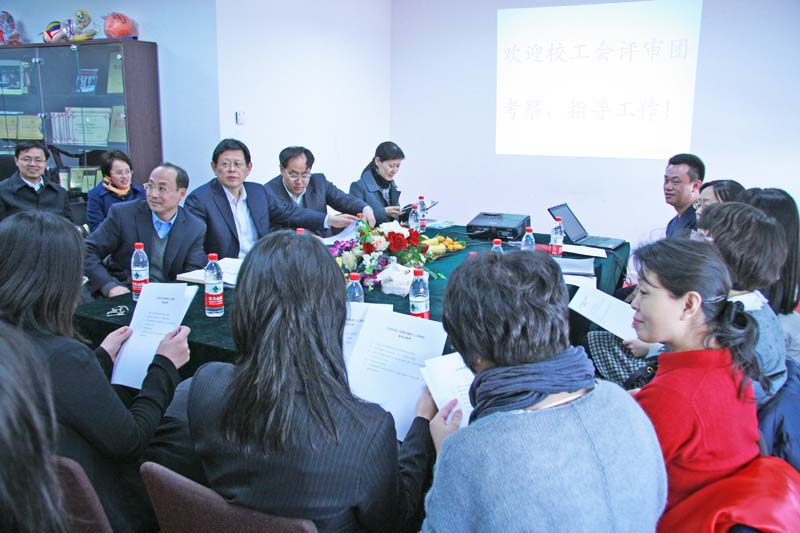 座谈会开始之前,验收组浏览了学院的多媒体信息显示屏、学院及各系部的展板。座谈会期间,浏览了学院的主页,特别是主页中的工会栏目(信息、“行万里路”图片展、“读万卷书”读书交流版块)。