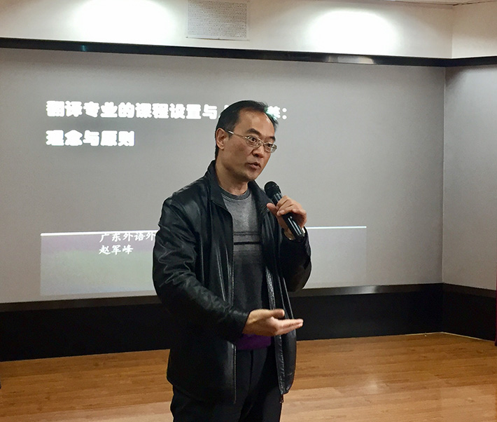 讲座中,赵军峰教授首先强调“师傅领进门,修行在个人”。他从个人跨考武大英语专业硕士研究生的亲身经历出发,鼓励年轻人要“干一行学一行,学一行爱一行”。同时他还结合广外高翻学院的变迁历程,指出作为翻译专业的学生,必须要明确自己的水平和位置,不断学习提高综合素养,以达到“明者因时而变,智者随事而制”的境界。