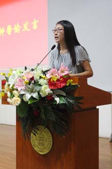 在开学典礼上,程晓堂院长代表全院师生对新生表达了祝贺,并介绍了北师大和学院的师资力量、办学条件、教学科研等情况,程院长指出“我们将来的路还很长很长,要做的事情还很多很多”,他希望同学们正确对待学习和生活被打好专业基础,提升个人素养。日文系教授冷丽敏作为教师代表发言,她从自己作为学长、从教29年的教师、一位90后的家长的三重身份为同学们分享了自己对大学生活的认识。她希望同学们能够养成良好的作息习惯,充分利用学校和北京的优质资源、人文环境等,刻苦学习,增长知识,锻炼技能。此外,本科生新生代表李兆晴、研究生新生代表钟馨愉,在校生代表13级俄文系硕士彭亚飞分别发言。最后,分党委书记林洪老师致辞,林老师为同学们分享习总书记在我校座谈会上提到的“学生时代是人一生中最重要的时光,回忆起来最美好的时光。但是过的时候不是最美好的,比较辛苦。”。他希望同学们以外国语言文学学科为平台,不断提高观察与思考能力,加强沟通与交流能力,完善倾听与表达能力,充满自信地去迎接下一个挑战!
