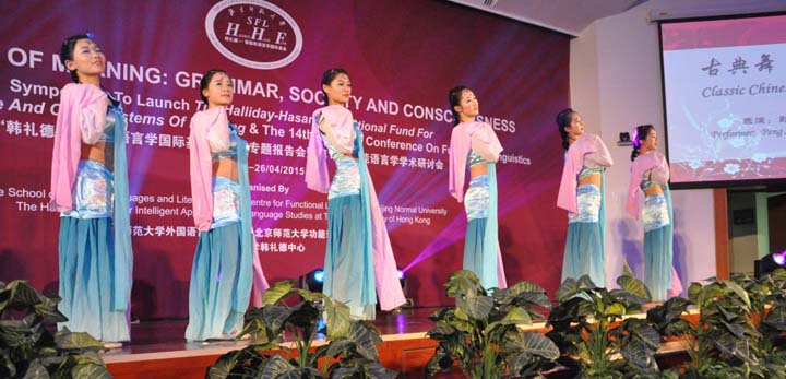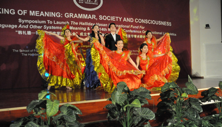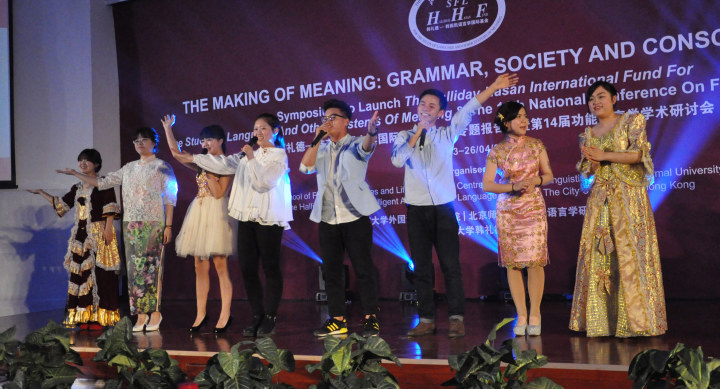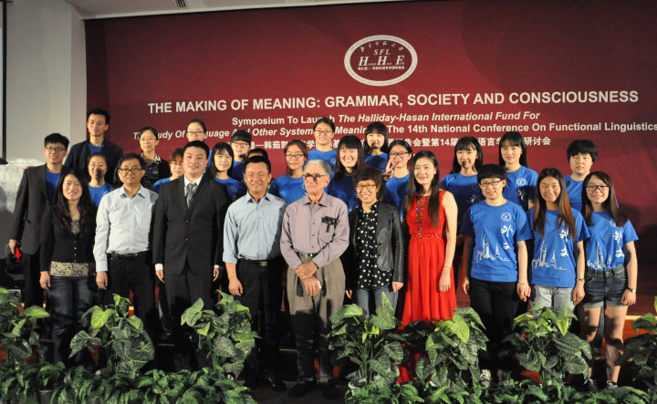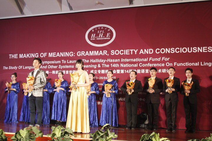 2015年4月24日晚,外文学院成功举办庆祝韩礼德教授90周年诞辰暨中国功能语言学学会成立20周年文艺晚会。受学院党政联席会和大会组委会的委托,外文学院分团委精心策划筹备了此次晚会,同学们积极参与其中,也得到了学院领导高度重视和老师们的大力支持。当晚出席晚会的有系统功能语言学的创始人韩礼德教授,系统功能语言学的先锋人物胡壮麟教授以及系统功能语言学领域的专家学者们,外文学院部分师生也参加了晚会。本次晚会也是我们外语学术文化节的一个特别一环,为学术文化节增添了一抹亮丽的色彩。