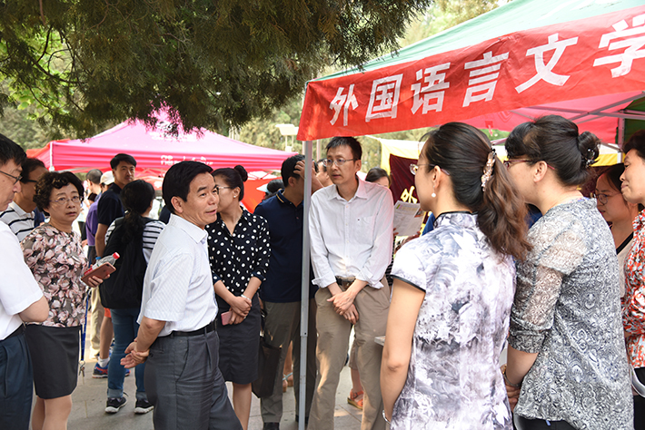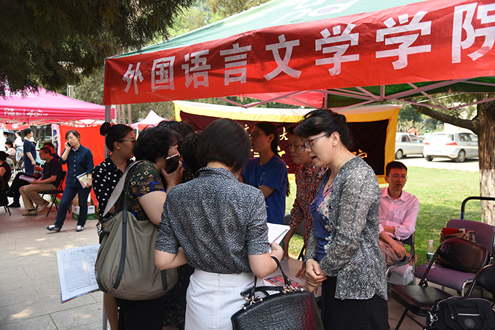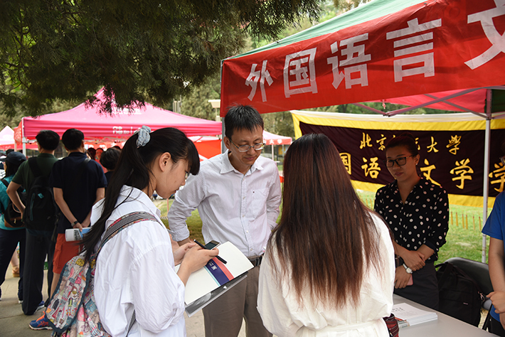 5月21日,我校在主楼广场举行了2017年校园开放日活动,千余名考生和家长来校进行高考招生咨询。av解说 副院长于晖、英文系主任王楠、日文系主任王志松、俄文系主任穆新华、分团委书记张新颖、本科生教务秘书张力青,在校生2013级董久谊、2014级楚帆、2016级邵浩博等教师和同学参加了此次高考招生咨询会,向考生及家长详细介绍了av解说 各专业招生政策、招生计划、录取原则等。