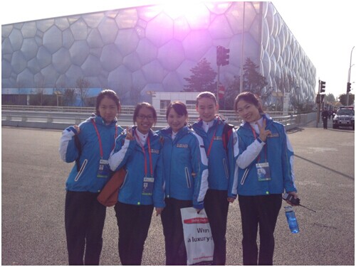 共组织46名学生报名志愿者,其中33名成功通过学校和组委会的选拔,占全校志愿者总数三分之一。通过选拔的志愿者按岗位需求被分成工商界讲解组、水立方迎送仪式组、国家会议中心指挥部、外交部志愿服务组等15个工作组开展志愿服务。