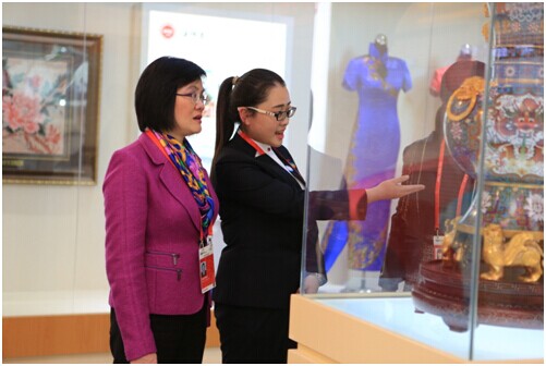 “第一苦是脚苦。本次志愿活动从3号几乎就正式上岗了,我们第一天都是穿着高跟鞋,一天下来,脚已经疼得看到高跟鞋就发憷了。在后来的几天中,我们很多人就在上岗的1小时穿高跟鞋,换班之后就立刻回到休息室换上舒服的鞋子。这样短短的几十分钟也能让脚舒服一些;第二苦是心苦。其实一整天进来参观展览,并需要听志愿者讲解的来宾并不多,在很多时候大家只是坚守在自己的岗位上。其实我们不怕累,我们很希望能够有多一些参观者,我们可以将自己了解的和他们分享。但是空荡荡的展厅里,我们只能够自己一遍一遍反复在心里演练。”来自2013级的硕士研究生志愿者吴雯昕如是回忆道。