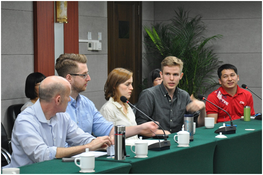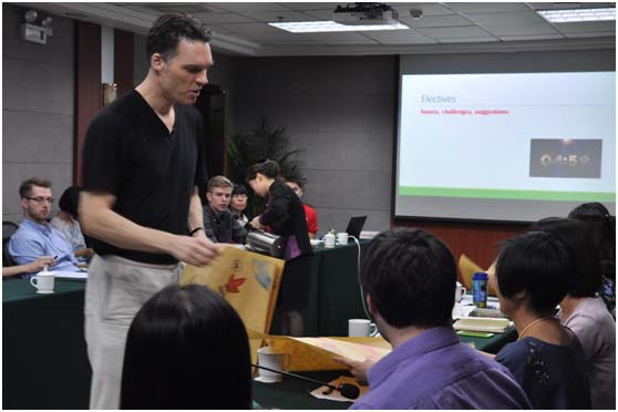 外教经验讨论会上,各位外籍教师分享了对研究生和本科生(含励耘班、翰德班)教学的思考,并与中方教师热烈讨论中外教师合作教学前景和下学年度本科英语教学改革问题。副院长郭乙瑶教授致辞感谢外籍教师的尽心付出。