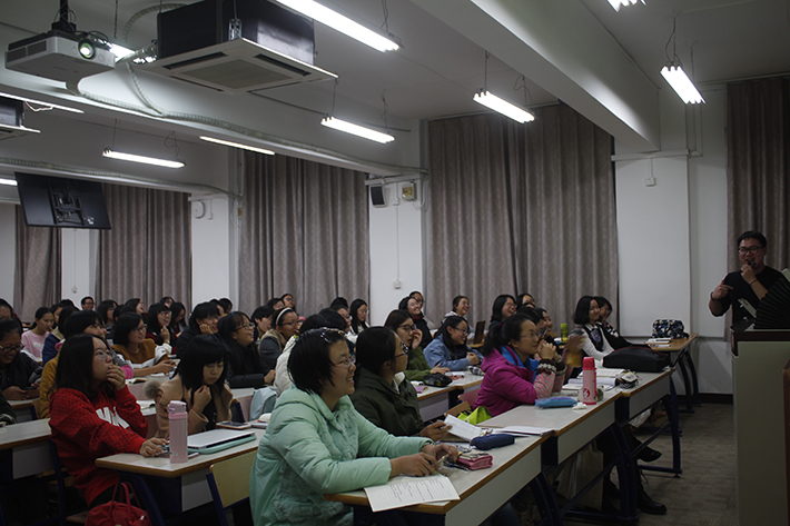 讲座刚开始,刘老师幽默的语言风格和洋溢的热情便点燃了全场同学的激情,同学们全神贯注,认真聆听;教室里笑声不断,现场气氛格外热烈。
