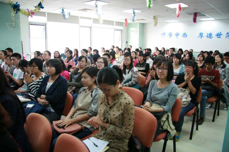 2013年9月27日下午,王炳林副书记在后主楼914报告厅为外文学院、物理学系师生作了题为“坚持党的群众路线”的专题报告,两院系教师、学生代表近200人聆听了报告。报告厅座无虚席。