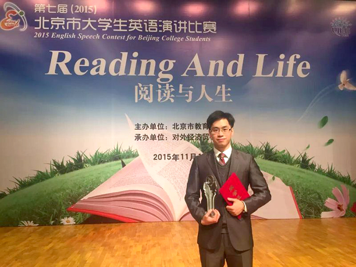 程康笛同学荣获第七届北京市大学生英语演讲比赛特等奖