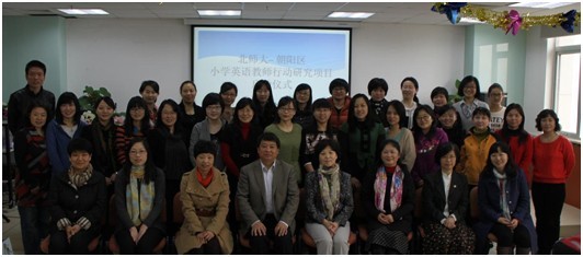 2013年3月16日上午九时, 由av解说 外文学院和朝阳区教委共同主办的朝阳区小学英语教师行动研究启动仪式暨第一轮培训在北师大后主楼914举行。本项目力求通过北师大与朝阳区教委合作开展行动研究,进一步探索高校与基教研合作构建促进中小学教师发展的新模式。该模式以改进实践为出发点,以建构有利于教师可持续自主发展的支持系统为目的,通过合作形成多方参与的专业学习共同体,以获得教师发展和课堂教学质量提升的最大效益,解决长期存在的理论与实践脱节的问题,为促进朝阳区中小学教师专业学习和发展提供一个可操作和可推广的模式。