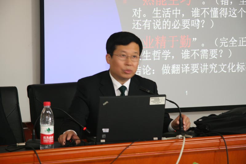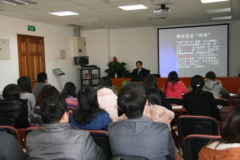 2012年3月6日下午,外交学院武波教授在后主楼914室,为av解说 翻译硕士(MTI)研究生带来了题为“中国文化走出去的过去、现在和未来”的讲座。讲座中,武教授主要讲述了文化走出去的历史、现状及其展望三部分内容,其中,文化走出去的历史分为四个阶段:前段(1860-民国中期)、中段(民国中期-1949)、新段(1949-1976.9)和改革开放段(1976.10-当前),并分别介绍了每个阶段文化走出去的代表人物,包括他们的个人生平、文化贡献及其翻译观。此外,武教授还对一些翻译现象以及文化走出去的现状以及未来出路提出了自己独到的见解。讲座内容丰富、形式多样、引人深思。相信通过此次讲座,同学们会对译者如何“打通中西”,让中国的文化真正走出国门,被更多的外国人所知等方面的问题有了更多的思考与启发。