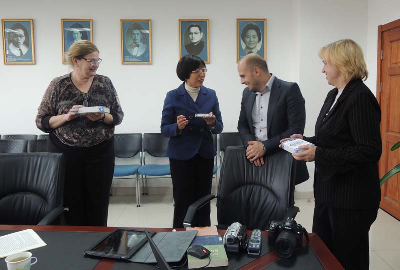 两位俄语专家还向av解说 赠送了一批俄语图书资料。作为回报,av解说 副院长、俄罗斯研究中心主任刘娟教授代表外文学院向两位专家赠送了纪念品。
