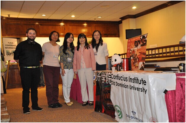 首先中方院长马磊和助理院长刘颖代表威玛孔院在弗吉尼亚外语教师(FLAVA)年会上参展,和州内另外两家孔院(乔治梅森和欧道明)一起宣传“孔子学院日”,并介绍各自孔院的文化活动。9月27日孔院三位老师潘泰、周奕和马磊和中文项目的两位老师苏芊和于鹏一起在会上做演讲,介绍大学生在学习中文时的困难和解决策略。