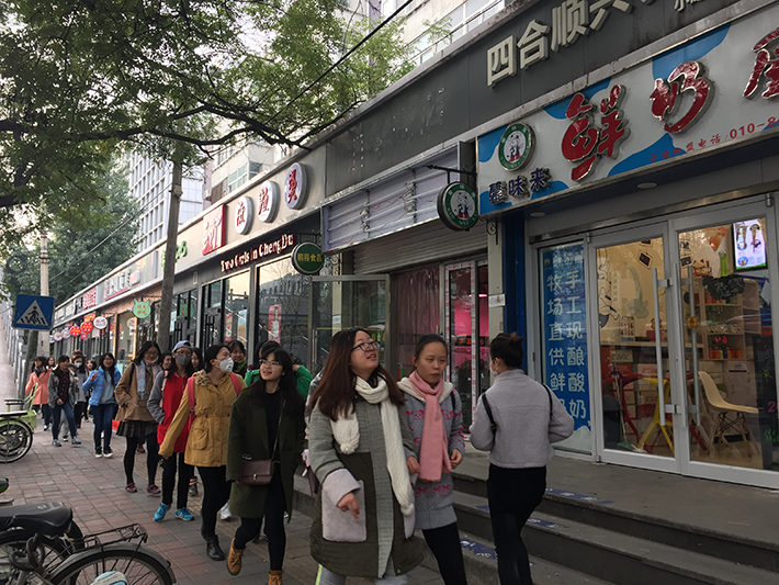 清晨8点,英专二班三班的同学准时来到约定地点集合,步行前往元土城遗址公园。
