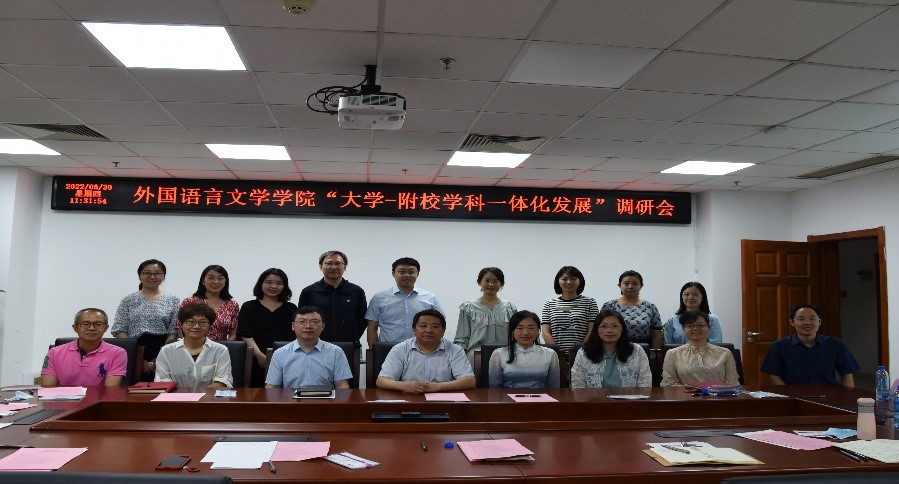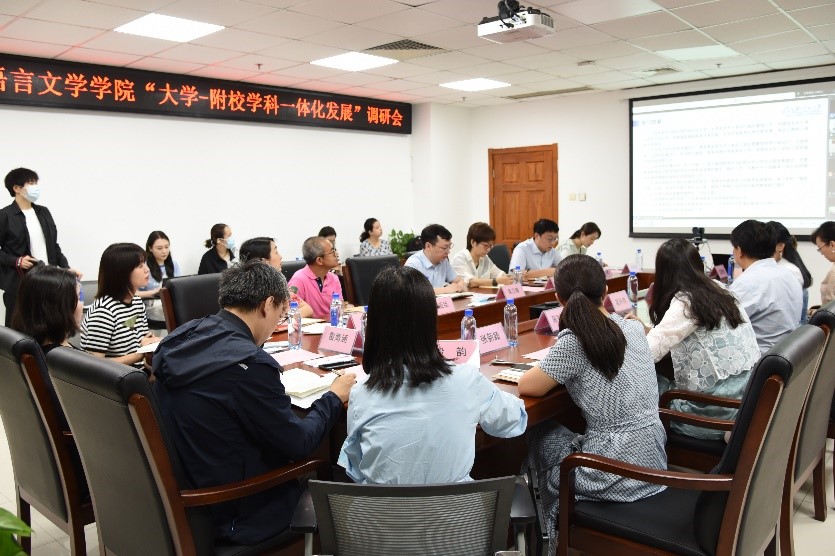 在自由讨论环节,学校基础教育发展管理部的各负责人与外文学院的领导、老师们本着以资源服务清单落实为抓手、以学科共同体构建为核心、以标准化体系建设为引领、以数字教育平台实施为特色的原则,就教师教育培养、服务学科建设、学生教育实习基地建设、教师科研的提升等方面进行深入交流,并达成重要共识。双方均表示未来会加强合作,为学校基础教育学科建设和“大学-附校学科一体化”发展做出应有的贡献。