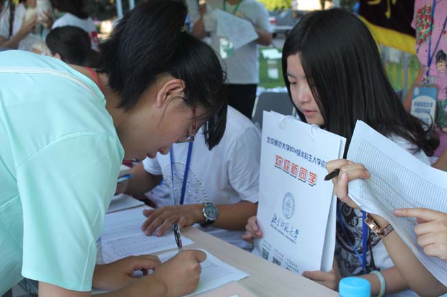 2014年8月25日为我校2014级本科新生报到日,今年的新生报到比老生开学提前了一周,和教师开学日是同一天,所以学生工作的老师们和学生干部们早在一周前就开始进行各项筹备工作。25日当天,从早晨5点到晚上20点,各项迎新工作在老师和同学们的共同努力下顺利开展。