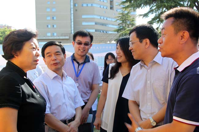 25日一大早,分党委副书记武玉红、团委书记张新颖、新生班主任钱小芳、董莹、张林、12级班主任宋丽香、学生助理姜秉圻以及学生干部和志愿者同学们都早早来到了报到现场。工作人员各司其职,志愿者们更是顶着炎炎烈日,为师弟师妹和新生家长们搬东西、扛行李,给新生们进行全程指引。迎新期间,分党委书记林洪,院长程晓堂,副院长刘娟也来到了现场,他们与新生家长亲切交谈。学院领导对新生的关注和照顾,使得初次让孩子离开自己身边的父母也放心不少。新生们在工作人员的引导下有序的完成了报到工作、并顺利入住宿舍。工作人员和志愿者的细心工作与热情服务受到了新生与家长的一致好评。