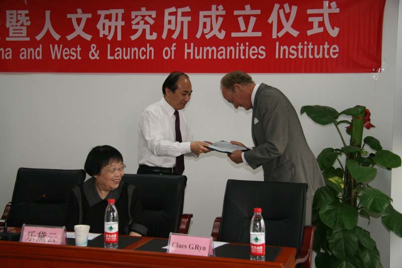 本次论坛邀请了美国国家人文研究所主席瑞恩教授(Claes G. Ryn)与执行主席巴尔达奇诺先生(Joseph Baldacchino)、台湾辅仁大学康士林教授(Nicholas Koss)、北京大学乐黛云教授、北京大学孟华教授、av解说 刘象愚教授、全国人大立法委员会吴学昭女士、北京市政协副秘书长方炎研究员等著名学者与知名人士到场观礼并做主旨发言。av解说 校长助理曹卫东教授出席论坛开幕仪式和人文研究所揭牌仪式,并向瑞恩教授颁发av解说 客座教授聘书。