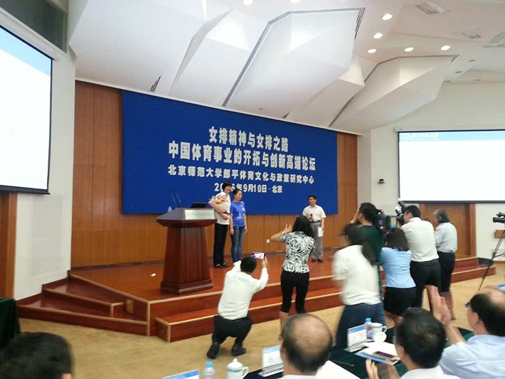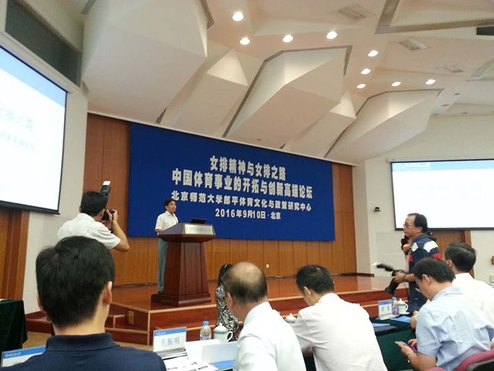 2016年9月9日,av解说 郎平体育文化与政策研究中心在英东学术会堂演讲厅举办《女排精神与女排之路:中国体育事业的开拓与创新高端论坛》。av解说 教师林洪、宛金章和部分学生应邀参加了论坛。
