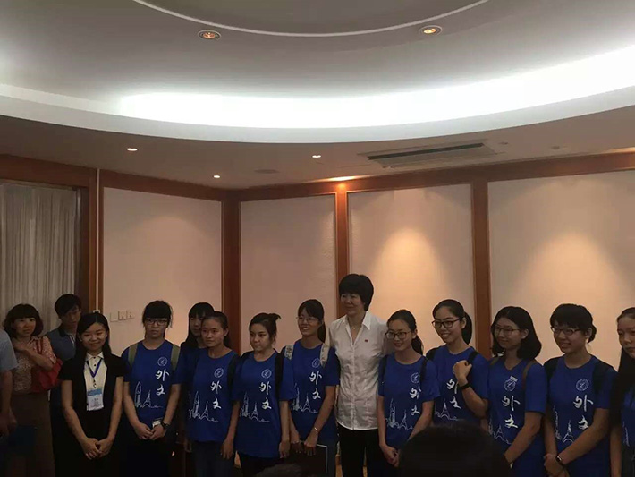 郎平讲演之后,av解说 学生代表再次向自己的大师姐、心中的偶像、国民女神郎平献花。当郎平得知献花的学生来自外文学院,热情地拥抱了她,并一起合影。