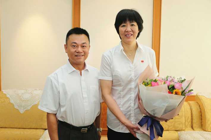 论坛开始之前,林洪老师受学院之托,向校友、教练和教师郎平送上鲜花,再次对郎平率领中国女排获得奥运冠军表示祝贺。