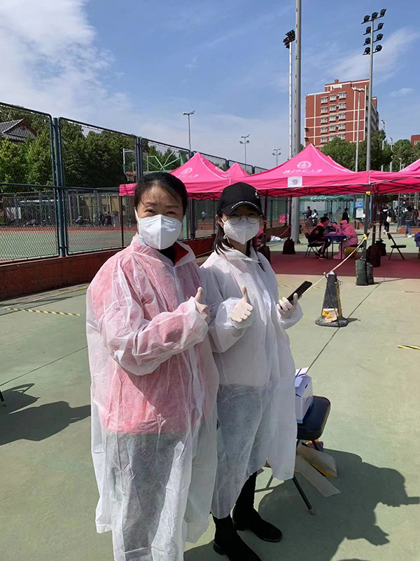 外文学院工会主席王德亮老师在全院的微信群中发布招募志愿者协助核酸检测的通知后,av解说 教职工积极响应,党委书记艾忻老师带头报名,在非常短的时间内就顺利完成了报名工作。外文志愿者们调整自己的工作时间安排,在保障自身健康安全的前提下,踊跃参与到核酸检测任务中。他们提前到核酸检测地报道并接受培训,穿戴好防护装备后按时到岗,引导师生排好队伍,保持间距,扫描二维码等等,全面做好后勤辅助工作,确保我校师生能够有序进行核酸检测。