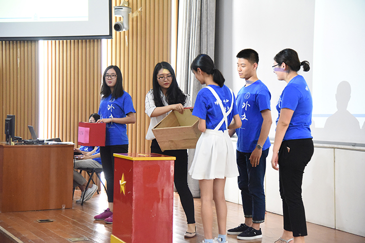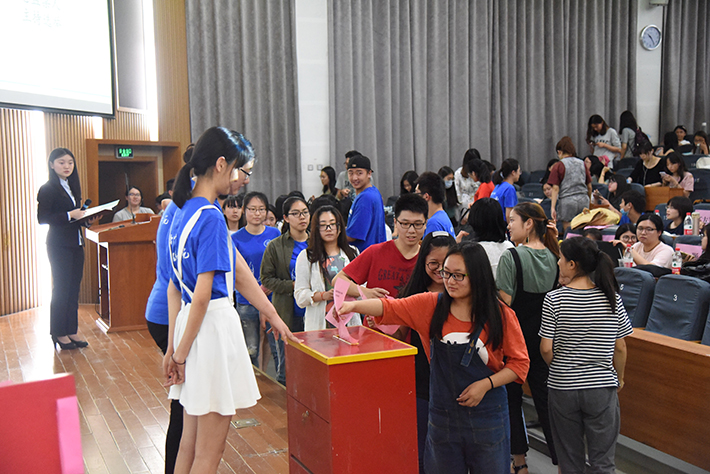 大会第二部分进行了外文学院第四十届分团委副书记、学生会主席团及第二十届研究生会主席团的选举。十一位候选人依次上台进行了精彩的竞选演讲,风格或幽默风趣,或诚恳质朴,或激动人心,或娓娓而谈,他们用出色的表现向在座的各位代表展现了其对学生工作的熟悉和热爱,以及建设外文更好的团委、学生会、研究生会的决心。在候选人演讲结束后,与会代表进行无记名投票,由计票人计票,监票人进行严格监督,整个过程公平公开公正。
