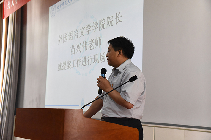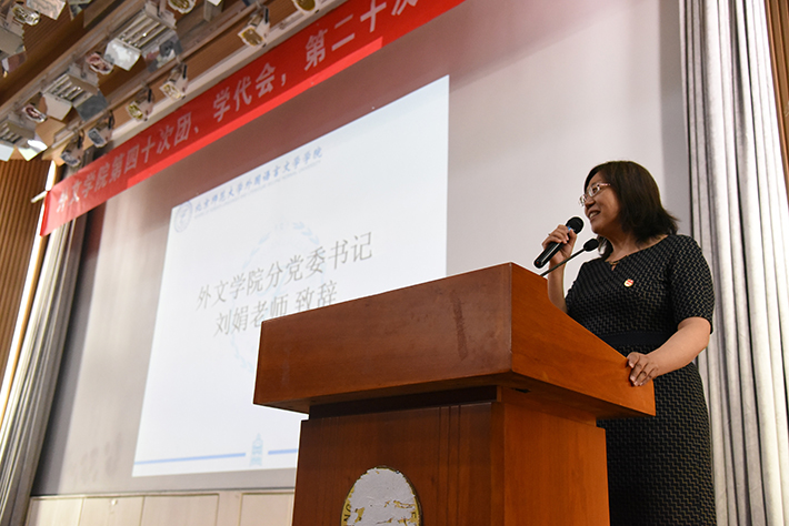 2017年6月13日晚8时,外文学院第四十次团学代会暨第二十次研代会于敬文讲堂成功召开。与会嘉宾有校团委副书记孙薇薇、外文学院分党委书记刘娟、外文学院院长苗兴伟、外文学院分党委副书记亓振华、外文学院分团委书记张新颖和院学生事务助理谢图南。出席的嘉宾还有校学生会副主席叶江源同学以及兄弟院系的分团委副书记和学生会主席。大会由院分团委副书记朱佳悦同学主持。