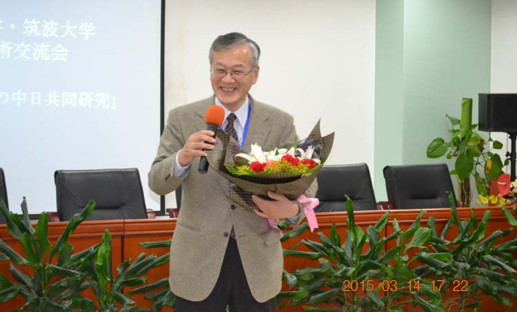闭幕式上,筑波大学矢泽真人教授在总结发言中指出:本次研讨会气氛十分融洽,促进了双方的学术交流,真正达到了“全球化背景下的中日共同研究”的目的。学院林洪书记百忙之中参加了周六下午的会议并在闭幕辞中指出:本次研讨会在前两次的基础上,交流的内容也更为深入和具体,希望双方的交流能够长久地开展下去。另外,为祝贺坪井美树教授喜迎退休,日文系特以“中国式礼仪”献上鲜花,感谢坪井教授长久以来关注并积极参与两所学校的学术交流工作。