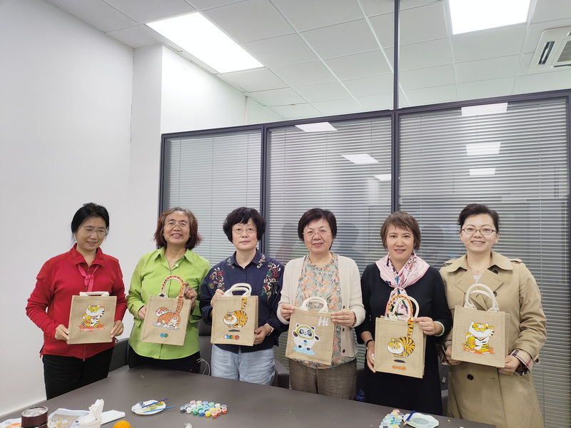 活动伊始,老师们领取了手绘包的相关材料,选择了自己喜欢的图案,很快就进入了手动操作状态。欢声笑语中,老师们在手工包上描绘出一个个栩栩如生、形态各异的卡通老虎形象,十分贴合新学期喜气洋洋、一派祥和的气氛。之前在北京冬奥会上赢得大家深深喜爱的吉祥物冰墩墩也在许多老师的手工包上跃然呈现。愉悦轻松的氛围使老师们喜笑颜开,鲜活生动的卡通形象为忙碌的生活增添了一抹靓丽的色彩。