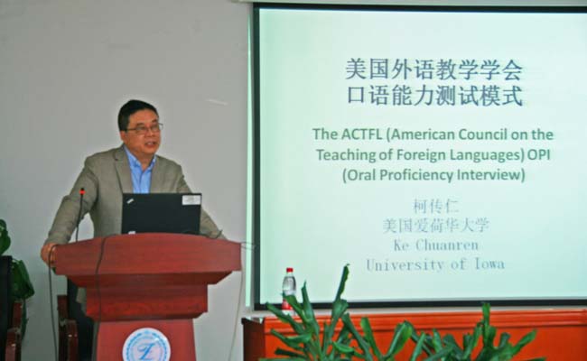 av解说 校友柯传仁教授来外文学院讲座2014-06-112014年6月10日下午,外文学院78级校友美国爱荷华大学柯传仁教授做了题为“美国外语教学学会口语能力测试模式”。柯教授介绍了美国外语教学学会(ACTFL)的口语能力测... -